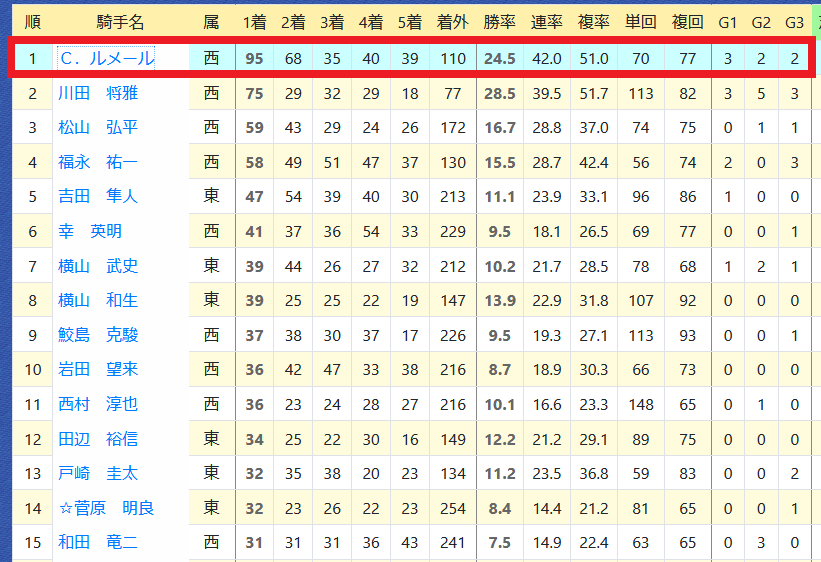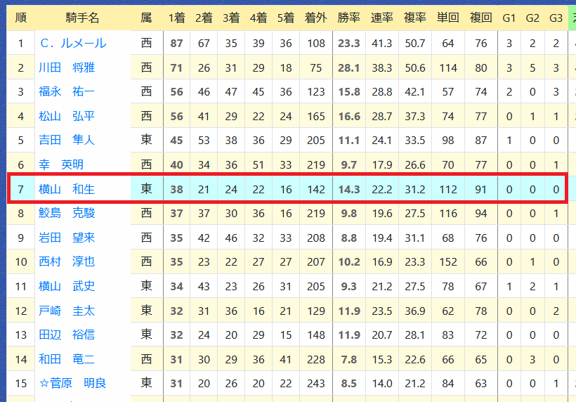 リーディング10位台は例年並み。