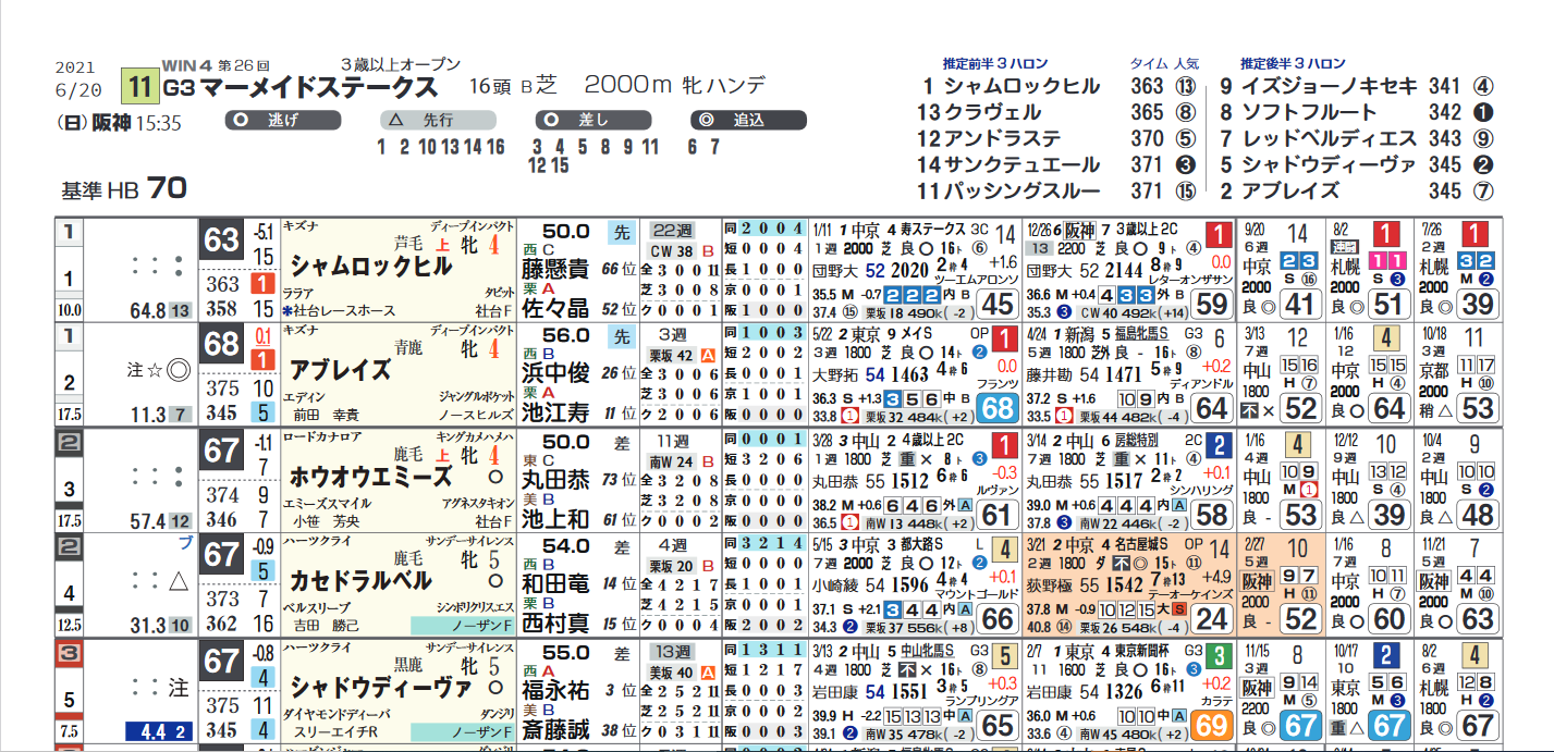 今年は6レースが行われて、勝ち馬は4角3番手以降→上がり3位以内をマーク。GⅡ・京都記念の勝ち時計は2分10秒4。日曜の雨予報がどう影響するか。