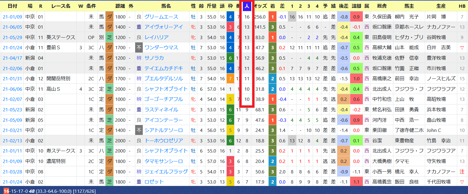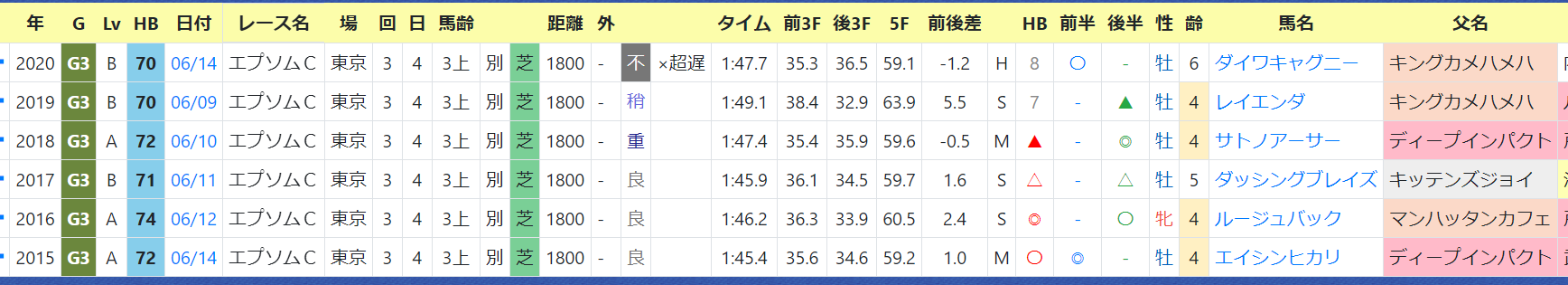 昨年は「推定後半3ハロン」1~3位がワン・ツー・スリー。「推定後半3ハロン」1位は2勝&3着以内が4回。勝ち馬の6頭が「推定後半3ハロン」5位以内に該当している。