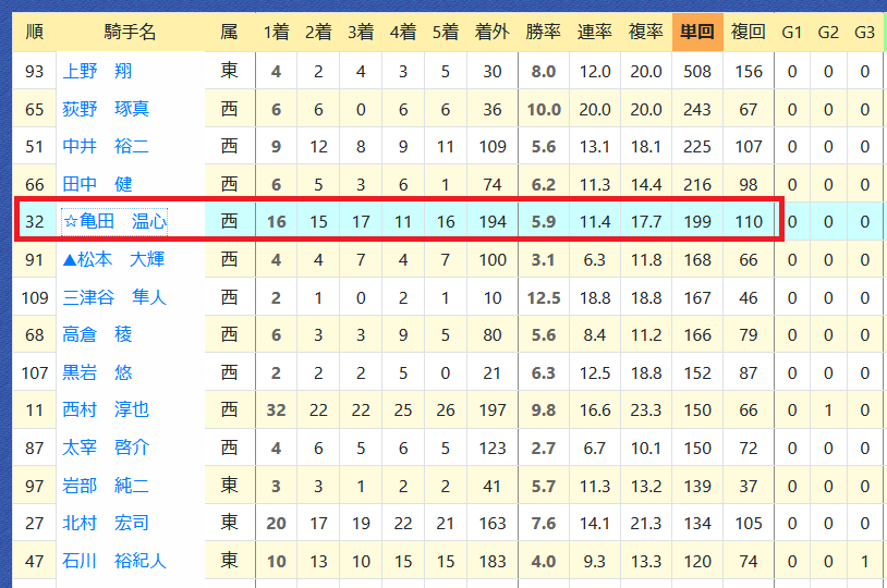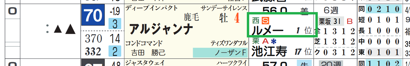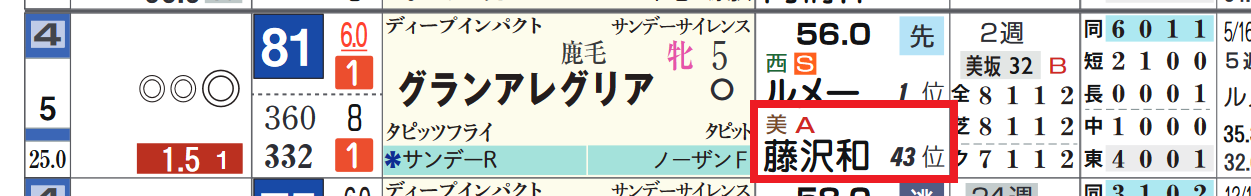 「リーディング順位」=43位、「厩舎評価」=《A》