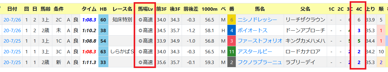 勝ち馬の4頭が「推定前半3ハロン」2~4位。3頭が「推定後半3ハロン」2~4位。