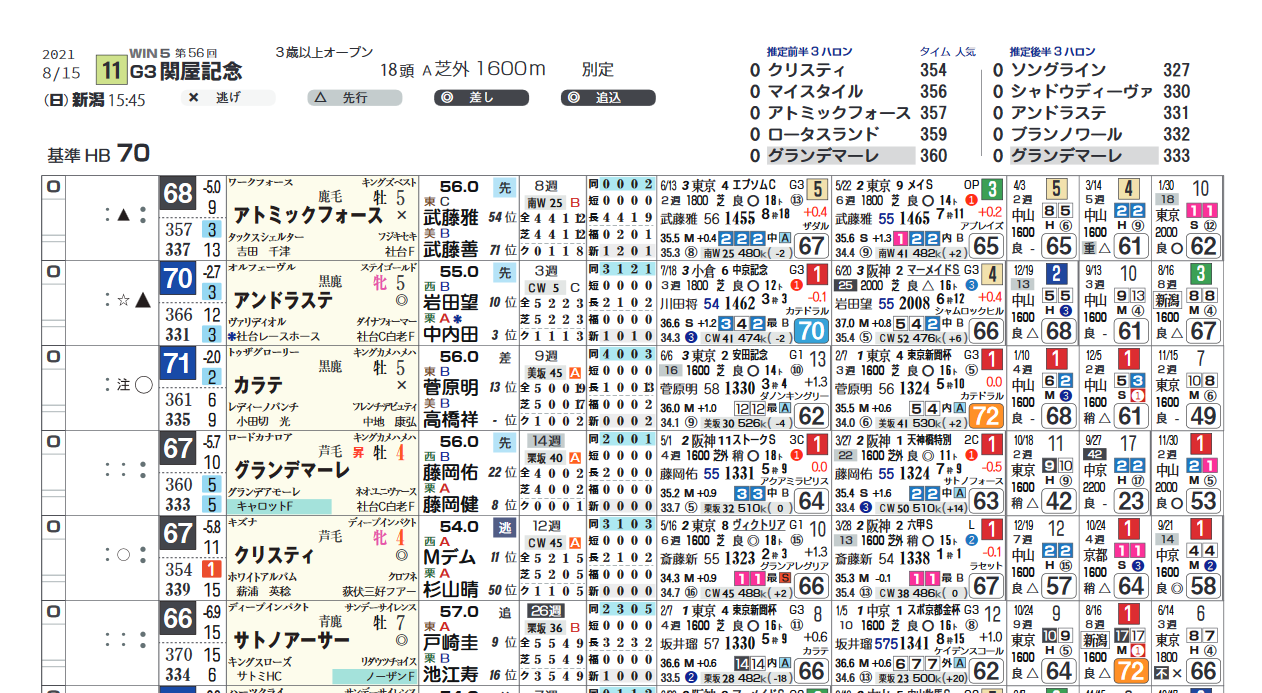 「ハイブリッド指数」1番手は不振。2ブロック目以降(=「ハイブリッド指数」7番手以下)の馬券絡みも多い。ハンデ戦らしい大混戦レース。