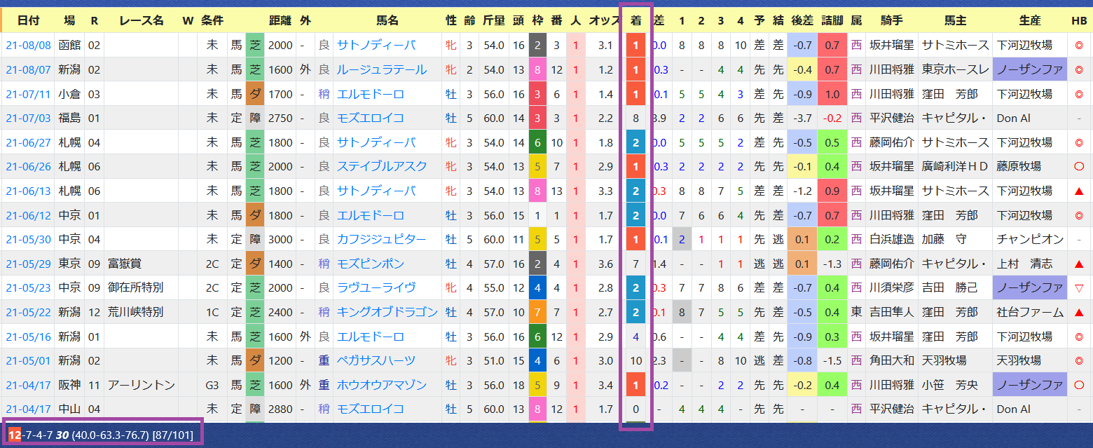【「HB新聞(ライト版)のサンプル】「推定後半3ハロン」1位は2連対。2018年&19年は前後半5傑入りが勝利している。