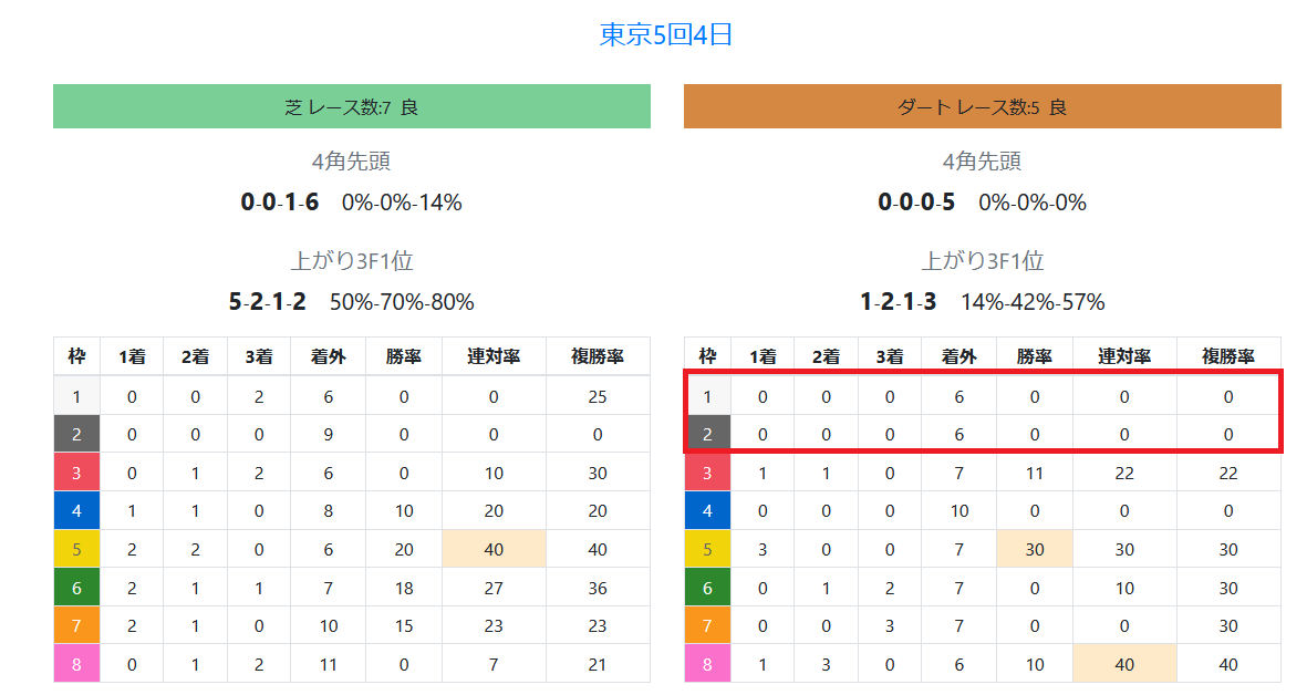 【東京競馬場のダートの馬場傾向(先週の日曜)】
