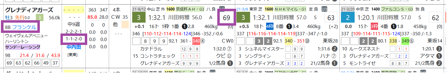 グレナディアガーズはオープン&重賞でで4戦すべて3着以内、京成杯AHで「ハイブリッド指数」=《69》をマーク、フランケル産駒は阪神の芝の短距離~マイルの成績&回収率が上々。