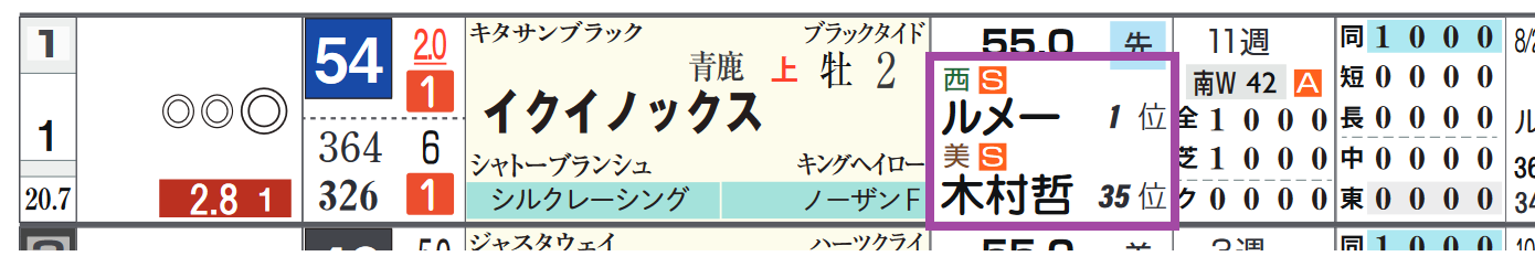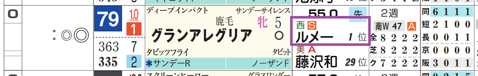 「リーディング順位」=1位、「厩舎評価」=《S》