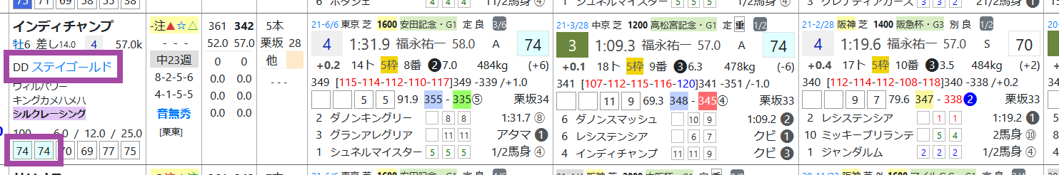 インディチャンプは近2走は「ハイブリッド指数」=《74》をマーク、オープン&重賞で3着以内が10回、ステイゴールドは産駒は阪神の芝の短距離~マイルの成績&回収率が微妙なのがどうか。