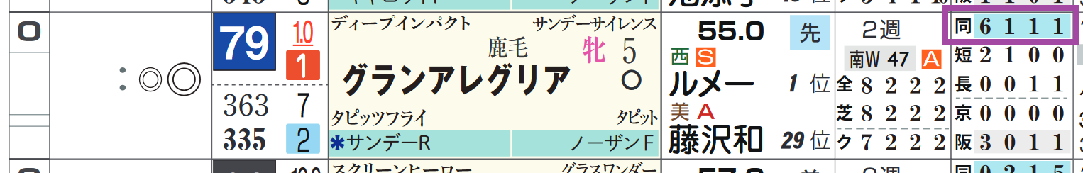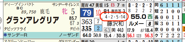 グランアレグリアはオープン&重賞で7勝、ヴィクトリアMで「ハイブリッド指数」=《81》をマーク、2走前&3走前は1600m戦で上がり最速32秒台をマーク。