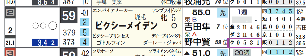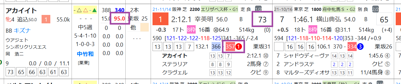 アカイイトはエリザベス女王杯で上がり最速をマーク、「ハイブリッド指数」=《73》をマーク、「上がり3位内率」=《95%》と優秀。