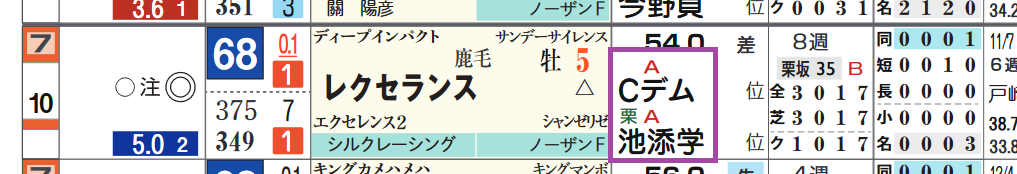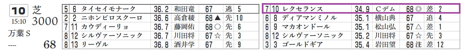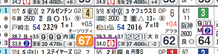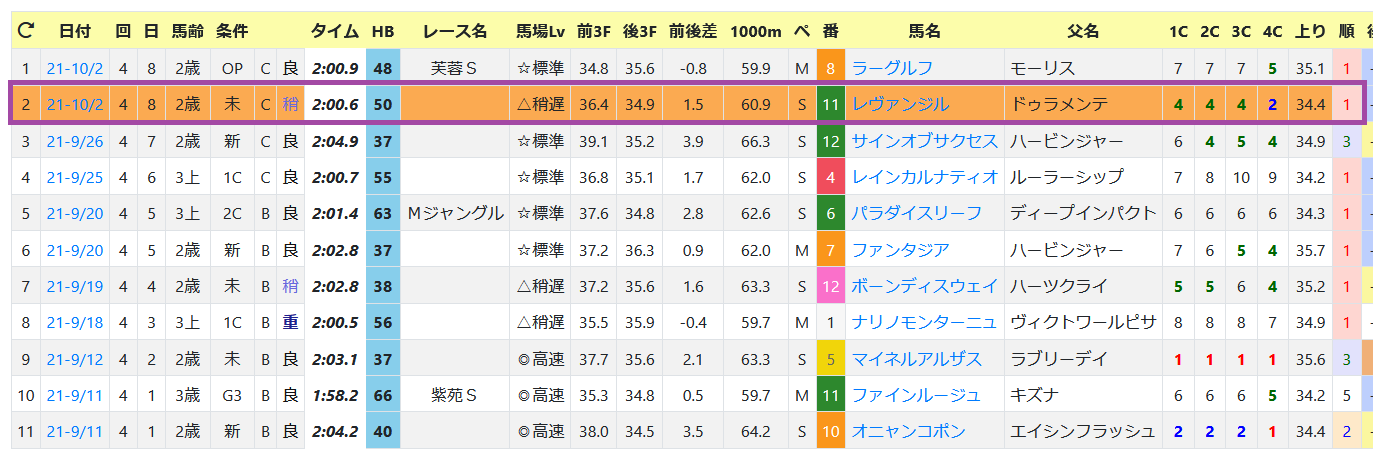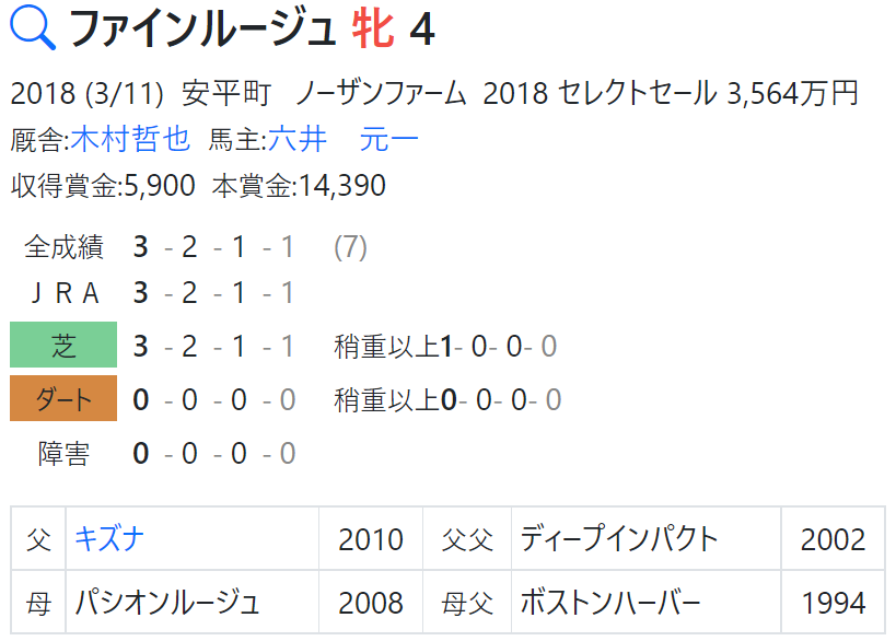ラスールは新馬戦で上がり最速をマーク、レースラップのラスト3ハロンが11秒2-11秒5-11秒6と優秀、藤沢和雄厩舎はオープン&重賞で勝率18.2%&36.4%と優秀。