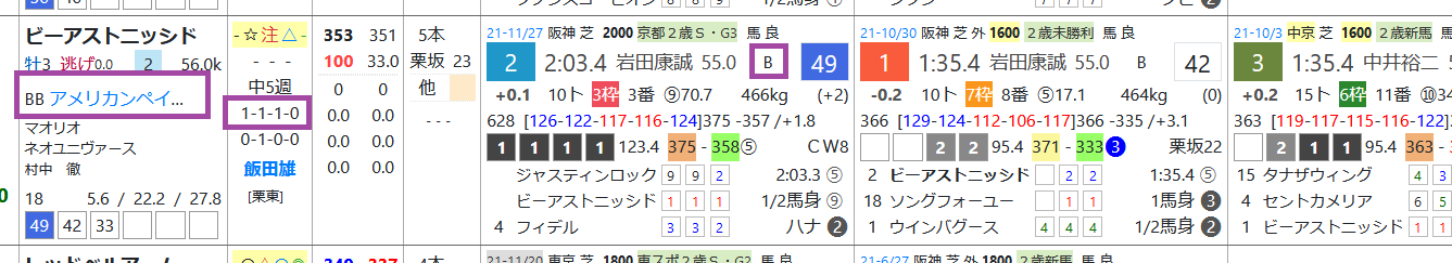 ビーアストニッシドは3戦すべて3着以内、京都2歳Sで「レースレベル」=《B》と標準レベル、アメリカンペイトリオット産駒は中京の芝の短距離~マイルの成績&回収率が上々。