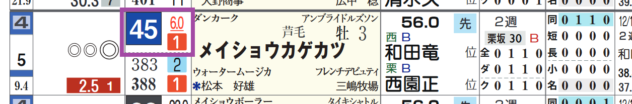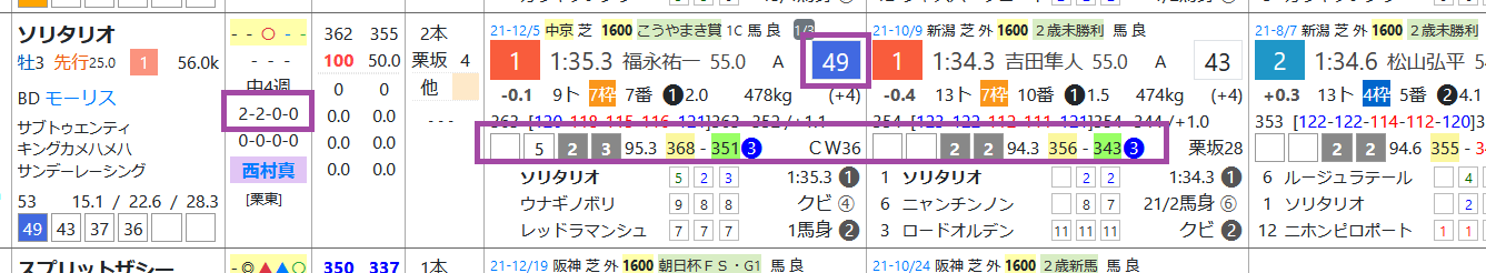 ソリタリオは4戦2勝&2着2回とパーフェクト連対、近2走は4角3番手以内→上がり最速をマークして勝利、こうやまき賞で「ハイブリッド指数」=《49》をマーク。