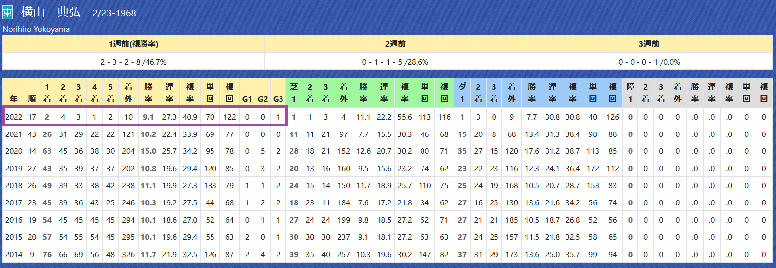大久保厩舎は芝の複勝率が優秀。