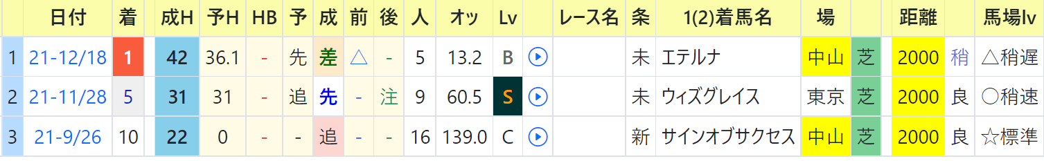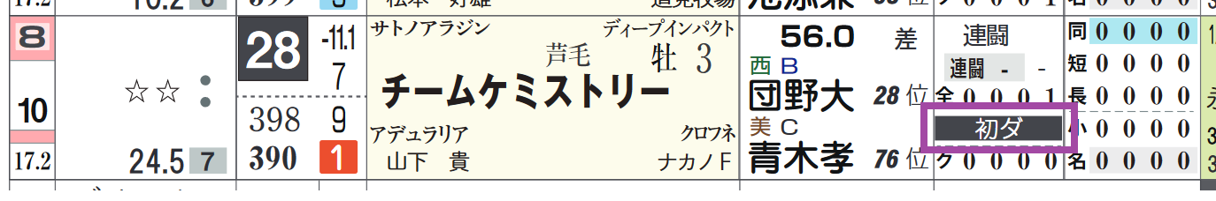 ⑩チームケミストリーは芝の新馬戦で上がり最速をマーク。