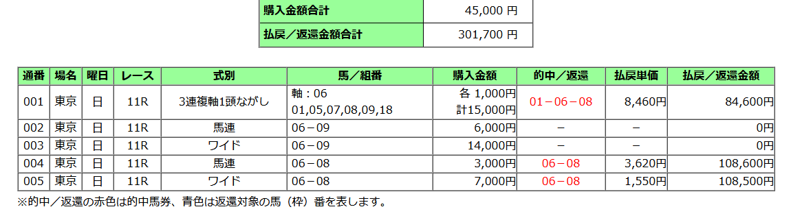【「HBリスト」のサンプル】・全場版 ・競場別版