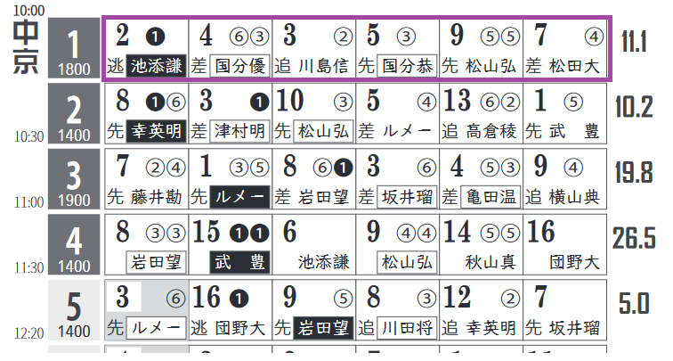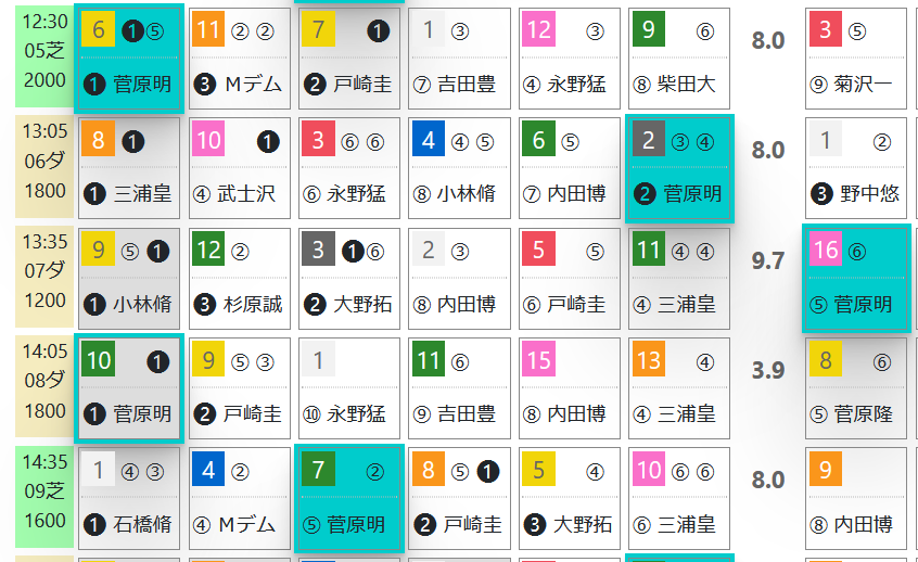 菅原騎手は中山の後半レースで有力馬が多数。