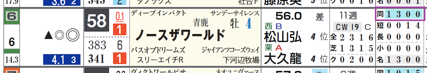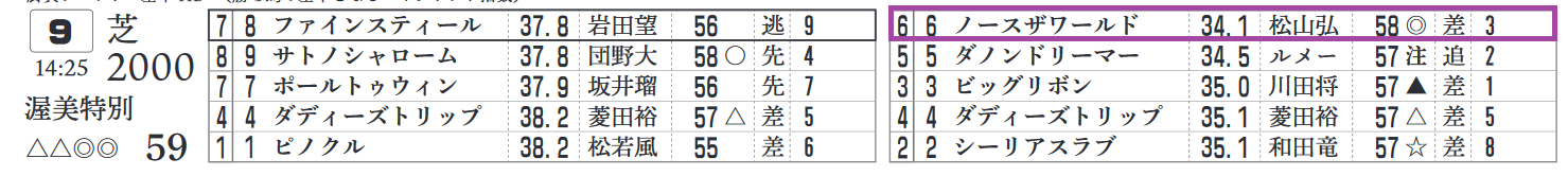 ⑥ノースザワールドは2走前&3走前に現級で上がり最速をマークして2着。