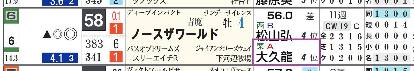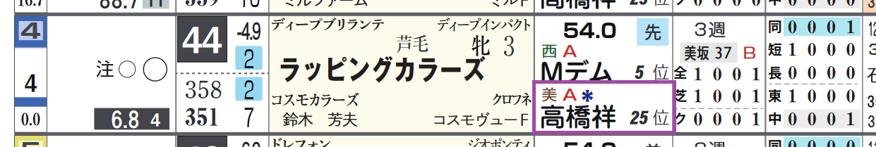 「リーディング順位」=4位、「厩舎評価」=《A》