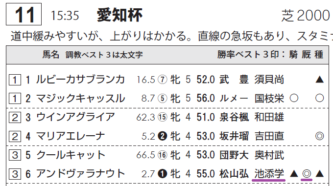 松山騎手は中京の芝の勝ち数が2位と優秀。