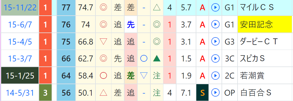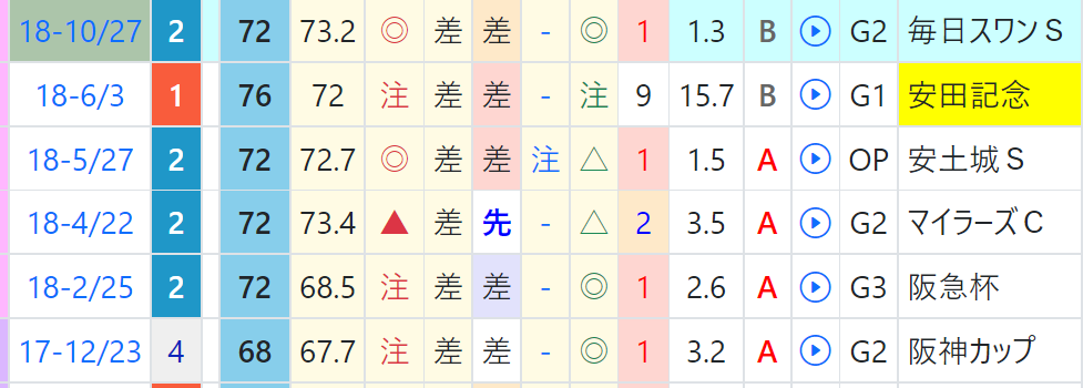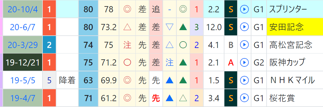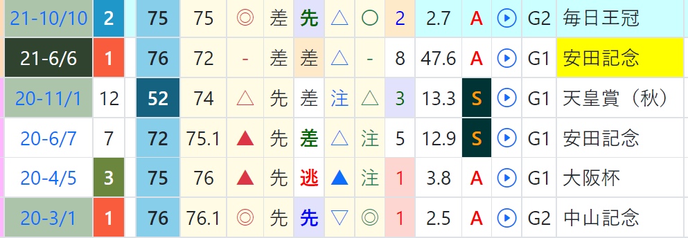 ソウルラッシュは一戦ごとに「ハイブリッド指数」が急上昇、マイラーズCで上がり最速をマーク、「ハイブリッド指数」=《73》をマーク。