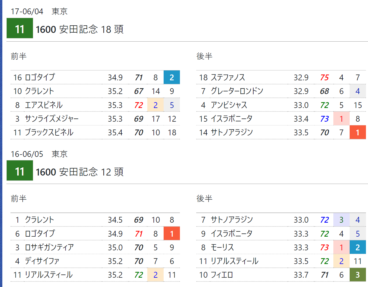 ①近4年連続、推定前半3ハロン2位以内が馬券圏内に