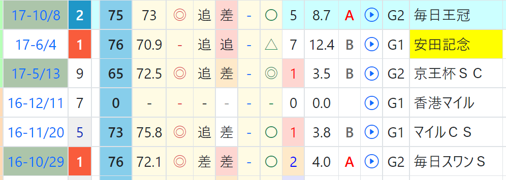 シュネルマイスターは国内のオープン&重賞では5戦すべて3着以内、近2走は上がり2位以内をマーク、マイルCSは今回の出走馬の6頭の中では最先着。