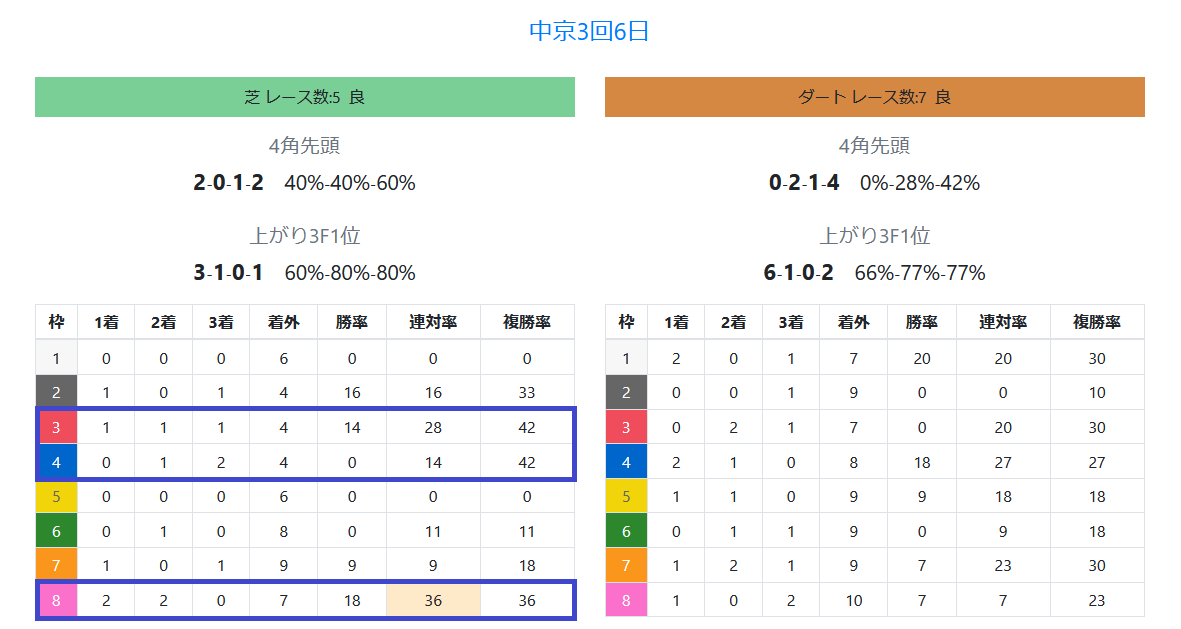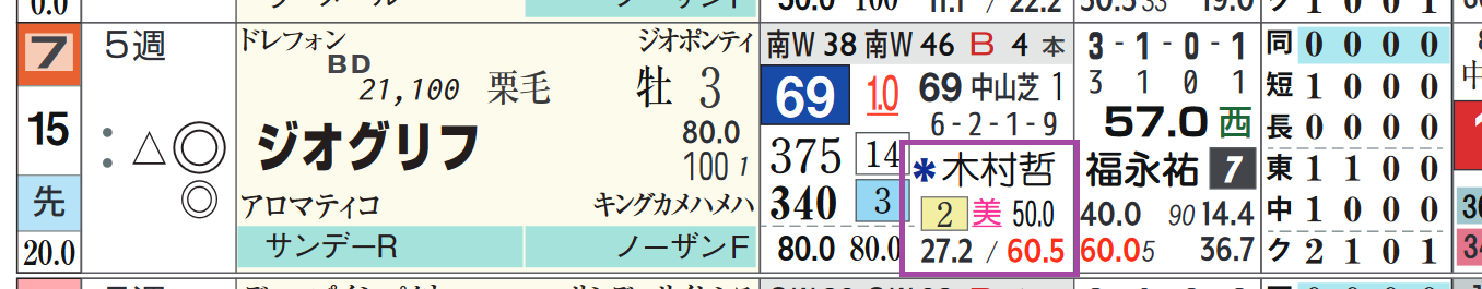 「厩舎の該当競馬場の成績」=勝ち数2位、勝率27.2%&複勝率60.5%