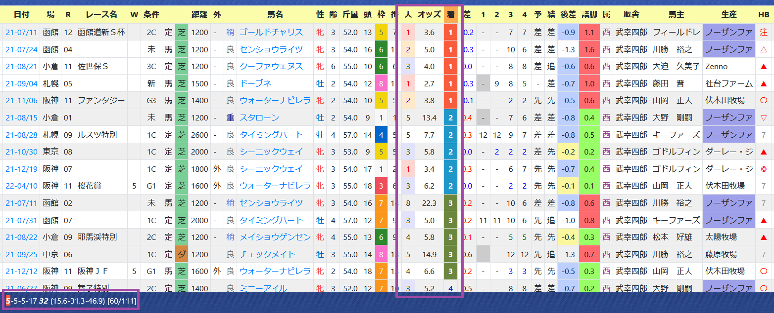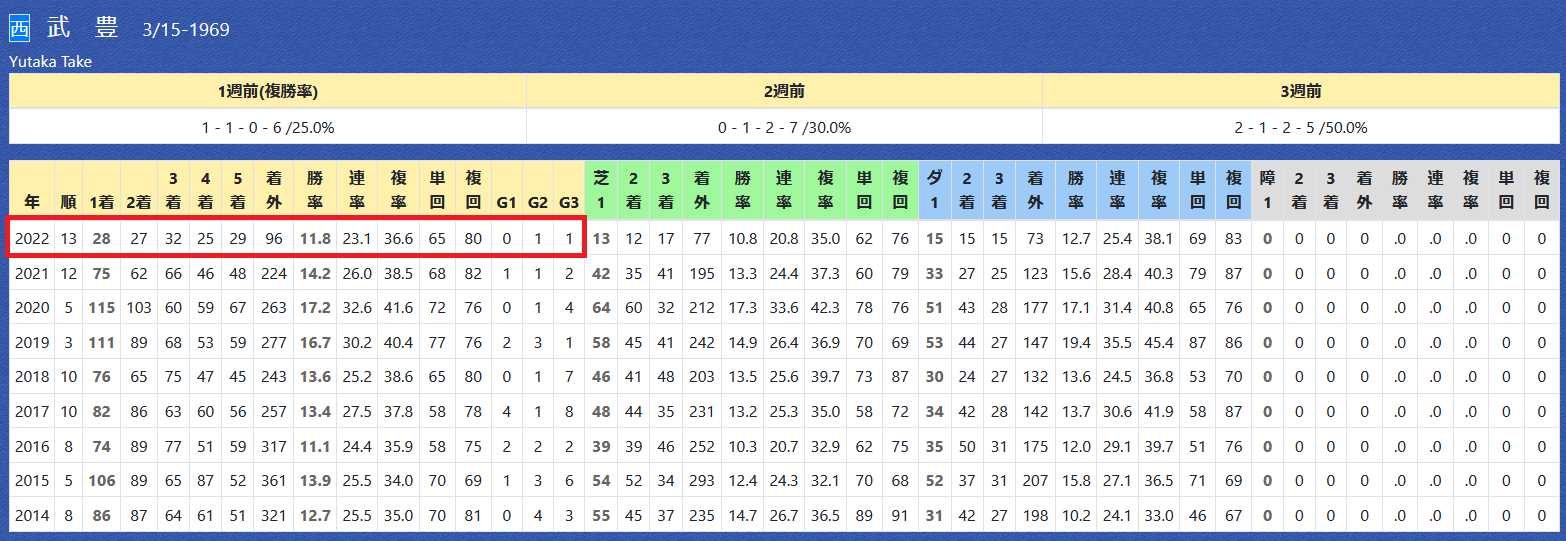 「騎手の該当競馬場の成績」=勝ち数1位、勝率30.8%&複勝率67.5%(234レース)