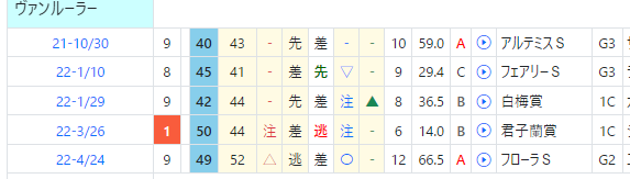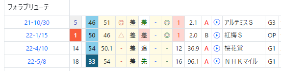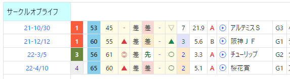 桜花賞で今回の出走馬の9頭の中で最先着。