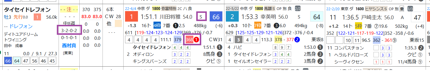 タイセイドレフォンは7戦3勝&2着2回、弥富特別で上がり最速をマーク、「レースレベル」=《S》とハイレベル。