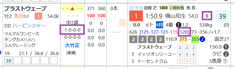 ブラストウェーブは新馬勝ちで1戦1勝、レースラップのラスト1ハロンが12秒台、「レースレベル」=《B》と標準レベルで半信半疑。