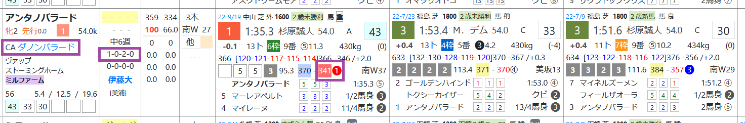 アンタノバラードは3戦1勝&3着2回、前走で上がり最速をマークしてV、ダノンバラード産駒は東京の芝の短距離~マイルの回収率が優秀。