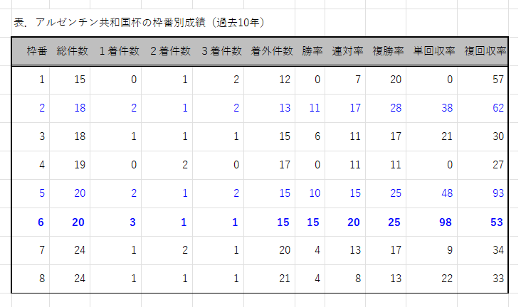 【データ分析】アルゼンチン共和国杯の枠番別成績