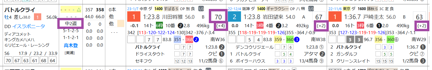 バトルクライはすばるSで「ハイブリッド指数」=《70》をマークしてV、近3走すべて馬体増で成長、中2週のローテーションがポイント。