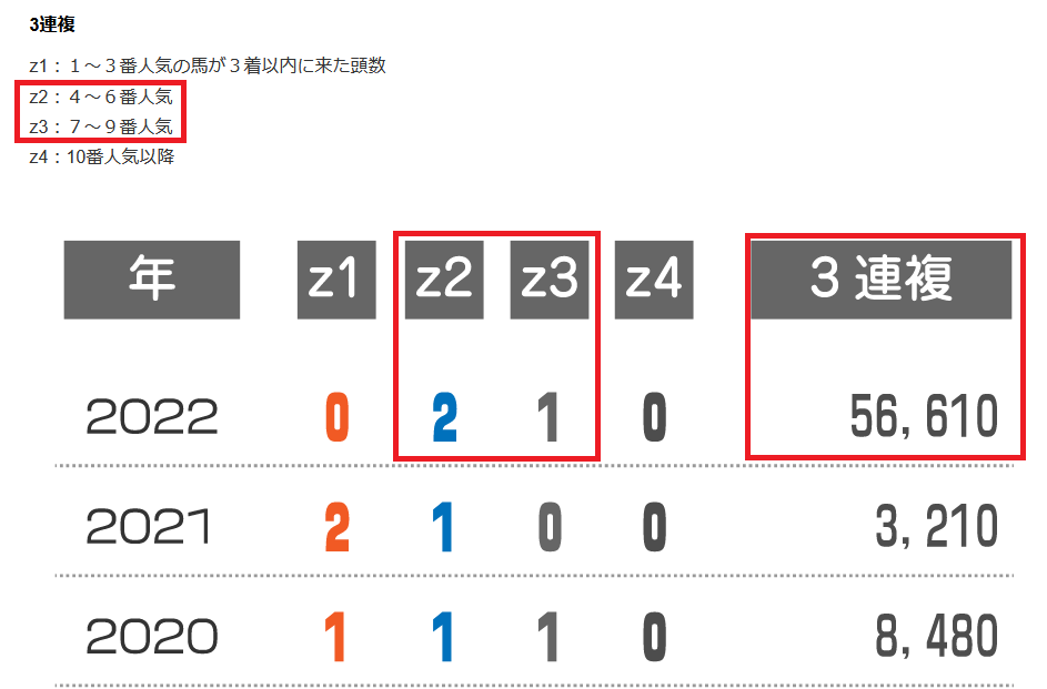 近年の3連複の配当