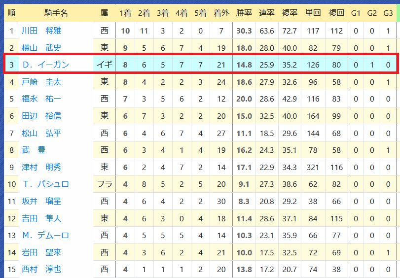 【データ分析】 D.イーガン騎手