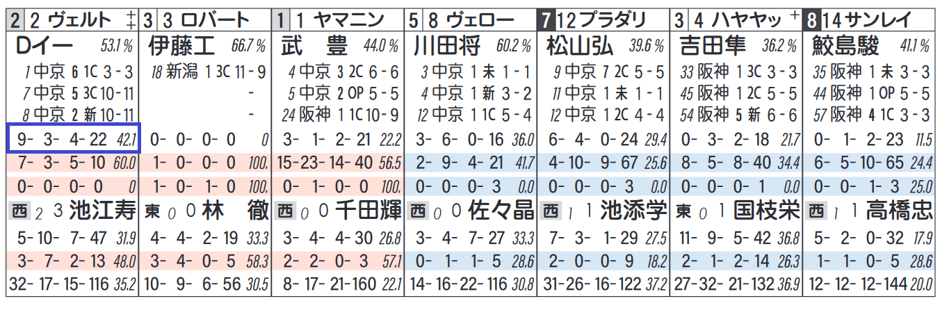 近3週の「騎手成績」(芝・ダ別)=【9・3・4・72】、複勝率=42.1%