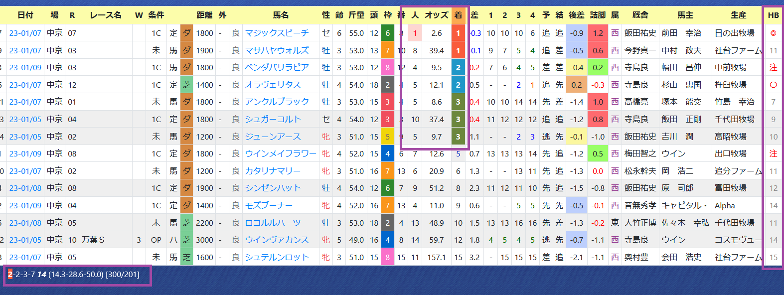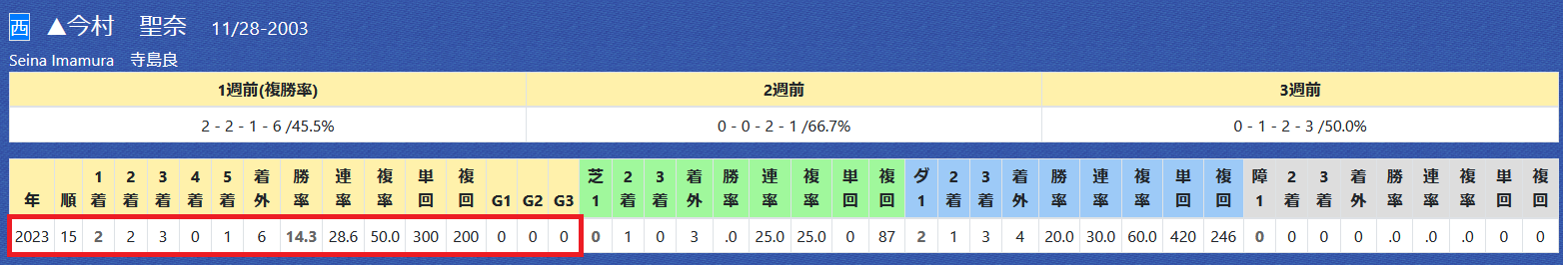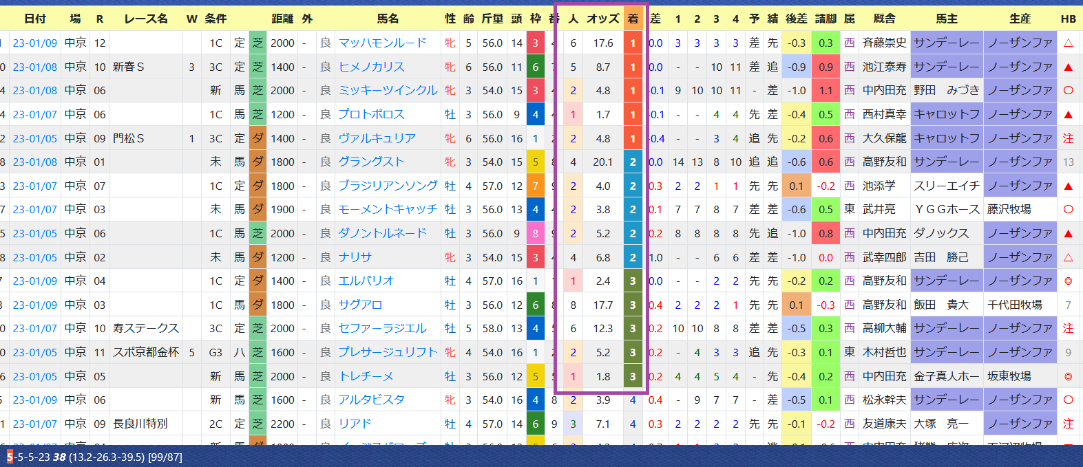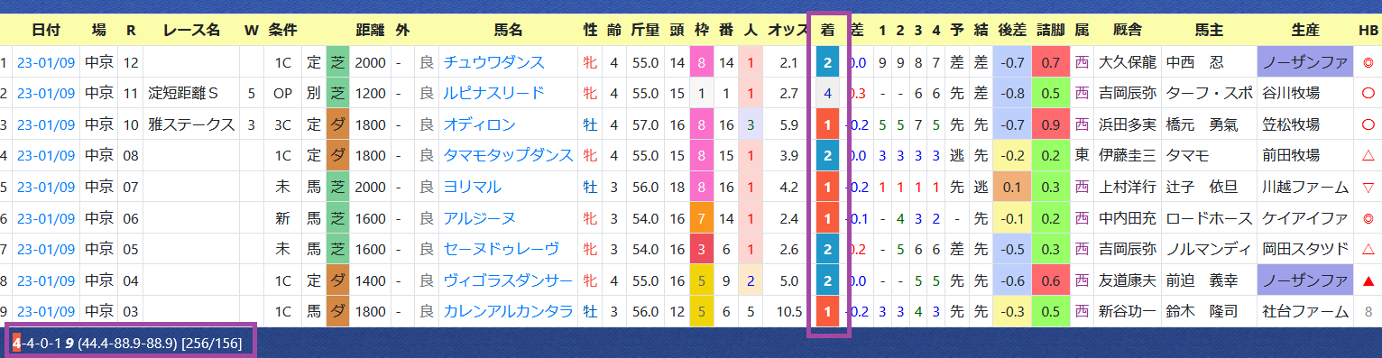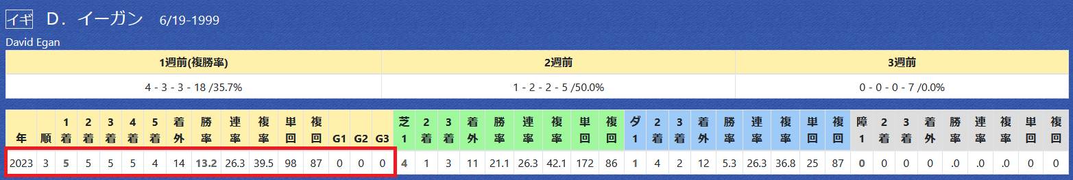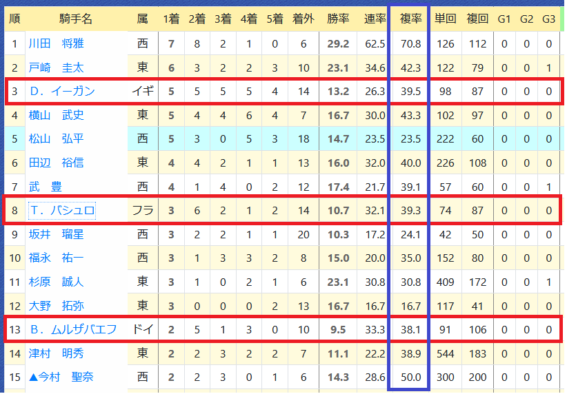 「厩舎の該当競馬場の成績」=勝ち数2位、勝率28.3%&複勝率52.2%