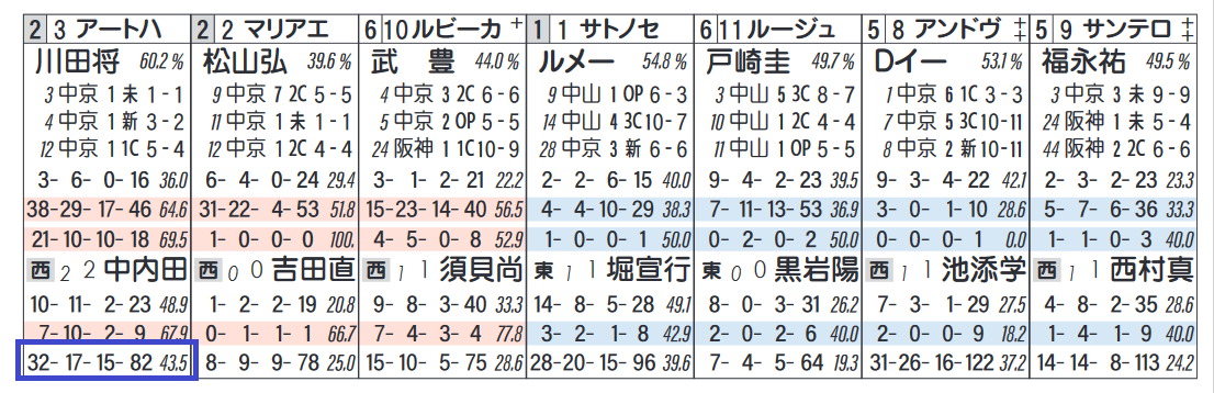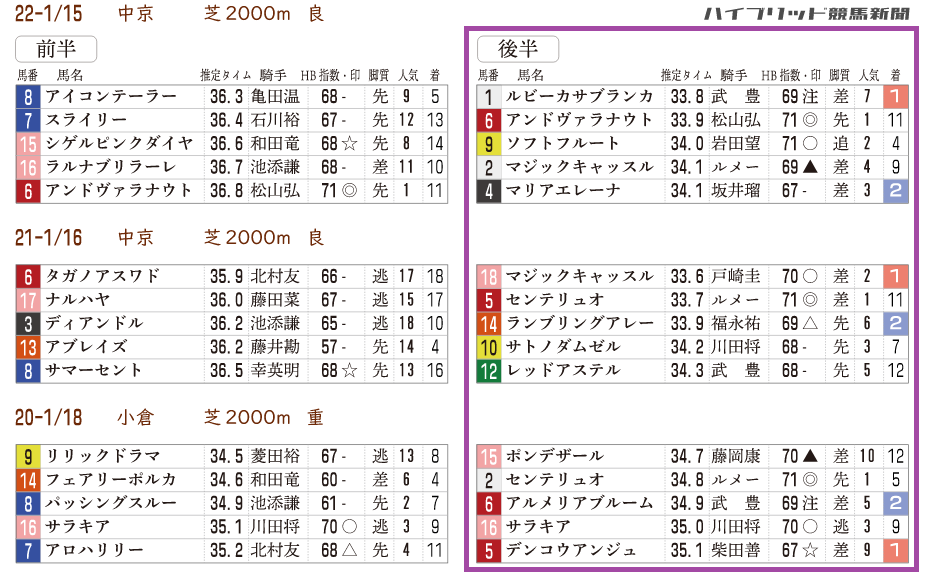 近3年の連対馬すべて「推定後半3ハロン」5位以内。近6年の勝ち馬すべて「推定後半3ハロン」5位以内に該当。
