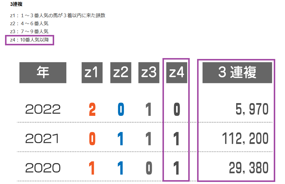 近年の3連複の配当