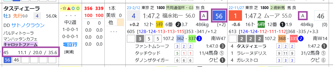 タスティエーラはデビュー2戦が「レースレベル」=《A》とハイレベル、共同通信杯で「ハイブリッド指数」=《56》をマークして4着、堀厩舎は中山の芝の複勝率30%超えと上々。
