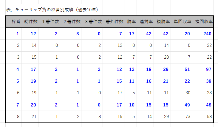 【データ分析】チューリップ賞の枠番別成績
