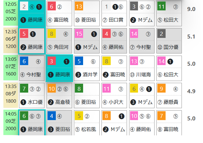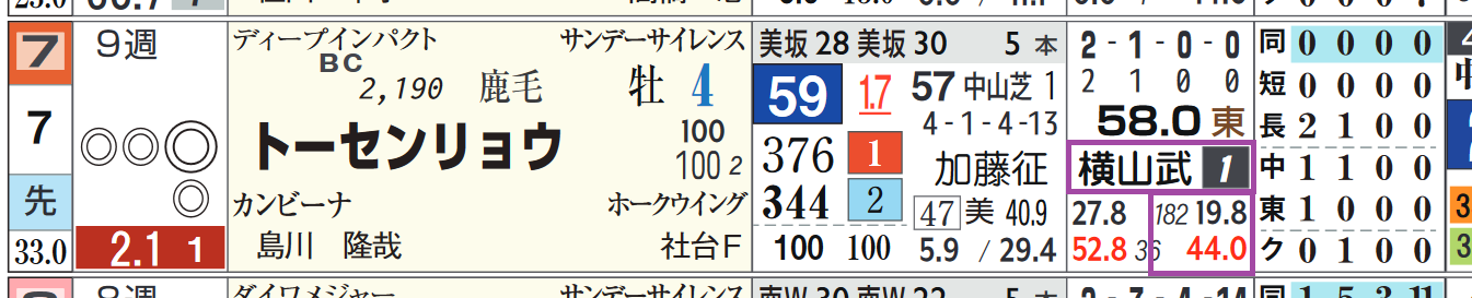 ⑦トーセンリョウの素質が上。横山武騎手は中山の芝の勝ち数が1位と優秀。