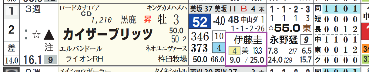 「騎手の該当競馬場の成績」=勝ち数1位、勝率19.8%&複勝率44.0%(182レース)