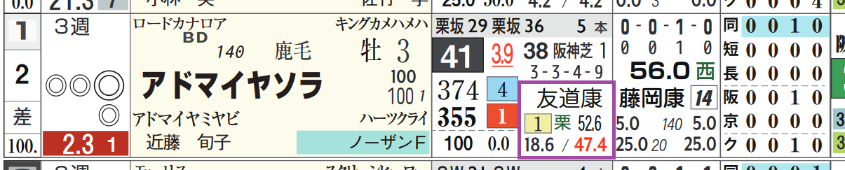 「厩舎の該当競馬場の成績」=勝ち数1位、勝率18.6%&複勝率47.4%
