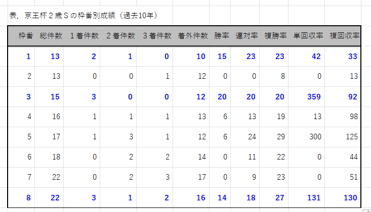 【データ分析】京王杯2歳Sの枠番別成績