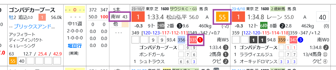 ゴンバデカーブースはサウジアラビアRCで上がり最速、「ハイブリッド指数」=《43》をマークして1着、1週前の「追切指数」=《43》と優秀。
