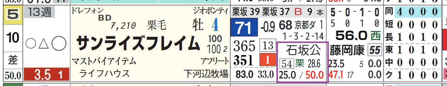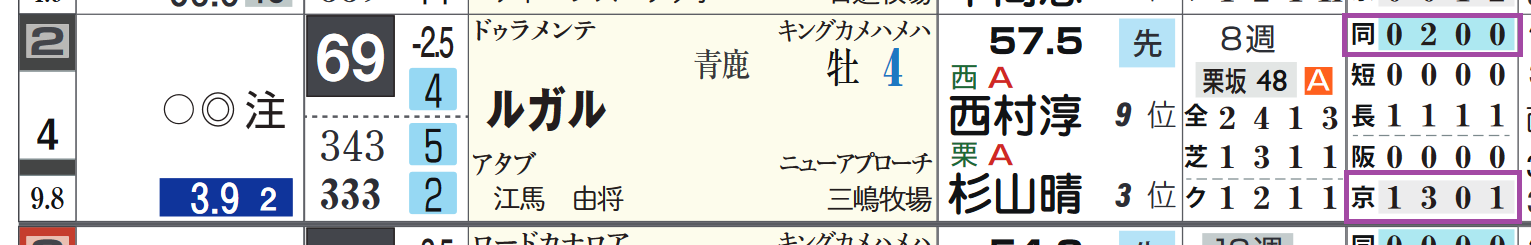 ジャスティンアースは未勝利Sで上がり最速をマーク、「レースレベル」=《A》とハイレベル、杉山厩舎は京都の芝の連対率が約40%と優秀。