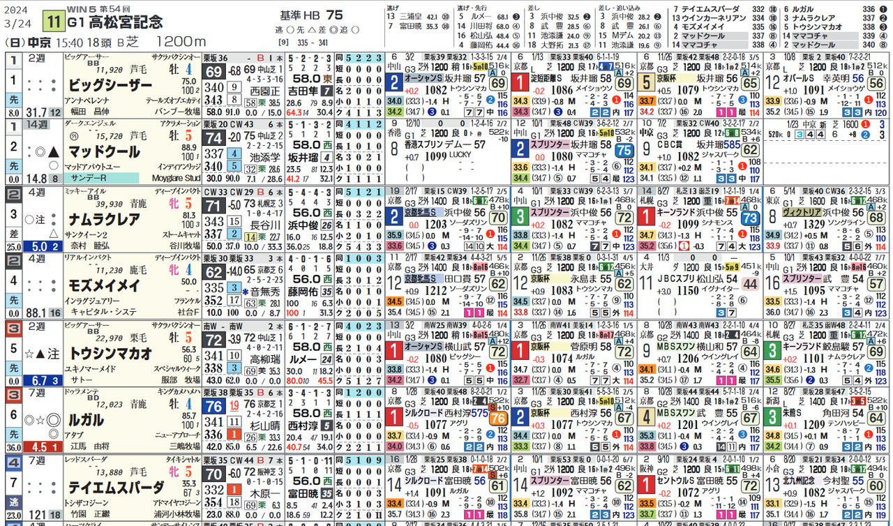 ⑥ルガルはシルクロードSがGⅠ級のパフォーマンス。
