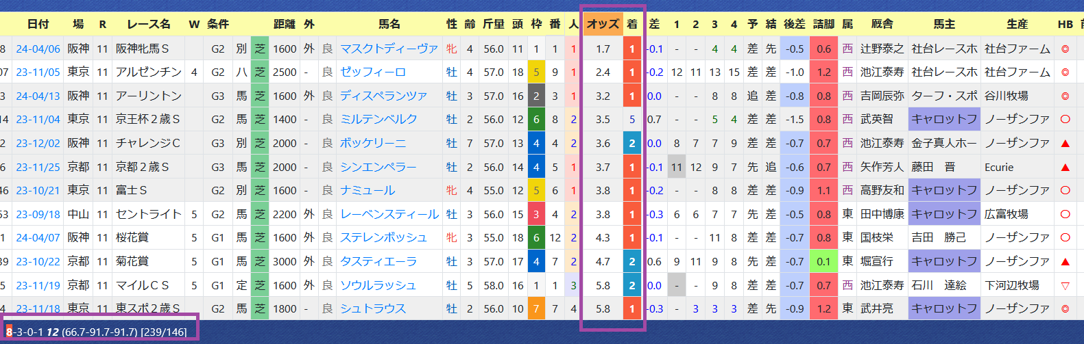 「騎手の該当競馬場の成績」=勝ち数1位、勝率29.3%&複勝率60.9%(92レース)